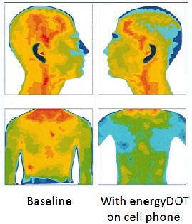 Biofield Changes As shown in the picture below the body's biofield picture taken as a baseline is chaotic with holes. After the energyDOT product is introduced, it is much more coherent, fewer holes, and much more balanced. View the full 52 page research document (links-->): Biofield Changes |