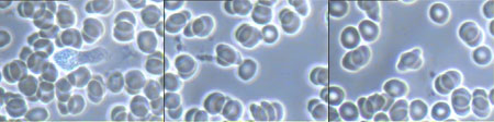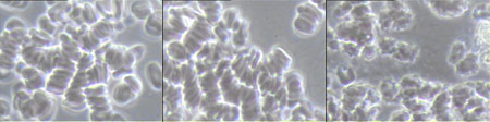The following are samples from a report that compared live blood analysis of participants. The following are samples of human blood taken after: 1. Exposure to the average environment. 2. 1 hour of exposure to a cell phone radiation. 3. 1 hour of exposure to a cell phone with an electroDOT ® attached, which is programmed to harmonize the energy field. | |||||